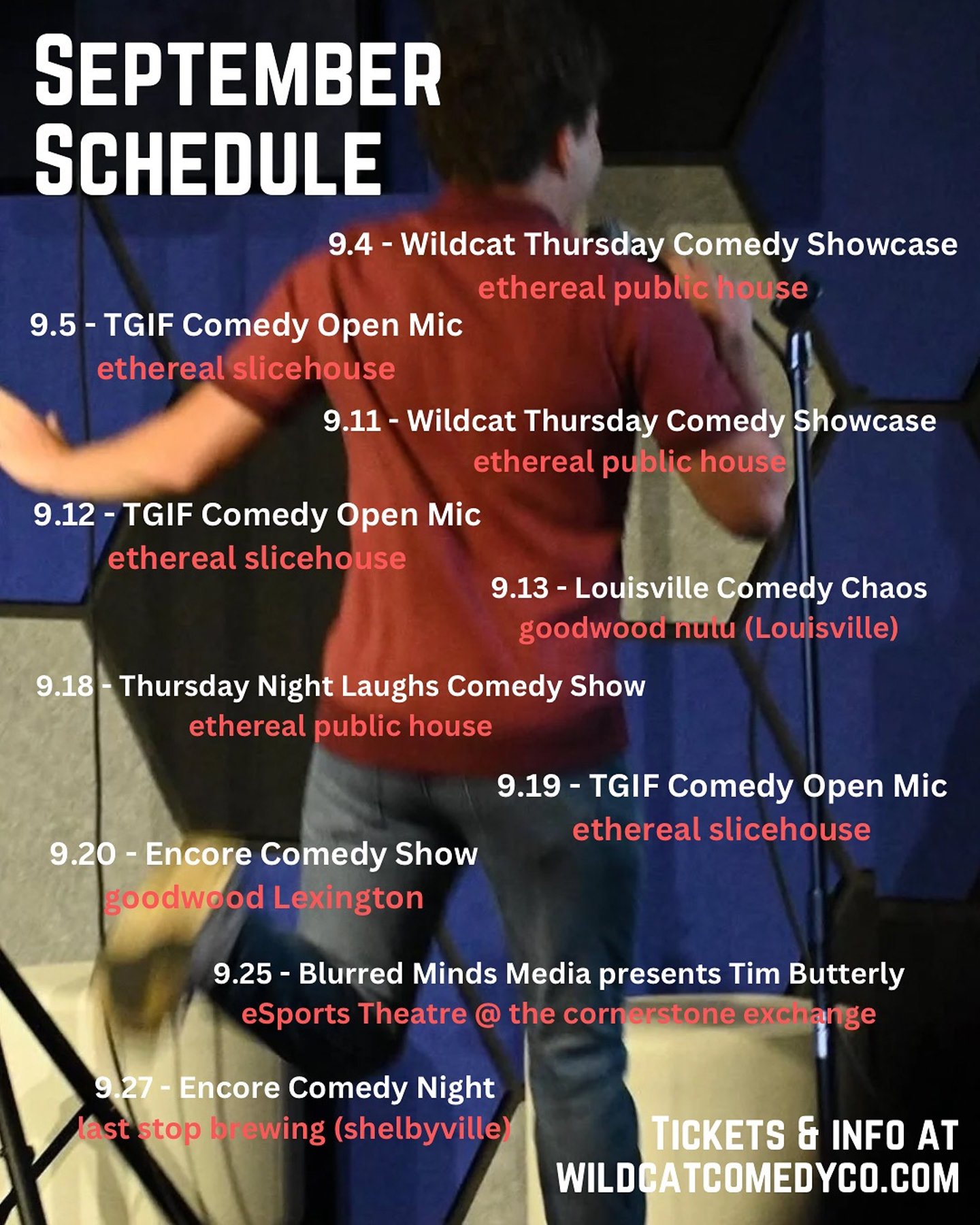 Wildcat Comedy Co. produces & promotes comedy shows in Lexington, Kentucky and surrounding areas. We believe that local comedy scenes are the scoliosis ridden backbone of the entertainment industry, and they should get the recognition they deserve. We aim to bring that recognition to every funny person behind a mic, or in front of a camera. Help us spread the word that life doesn’t have to be so serious. C’mon, laugh a little!!