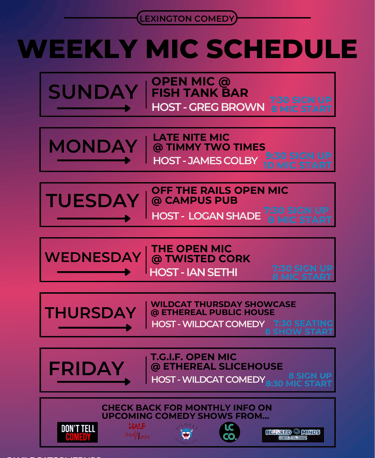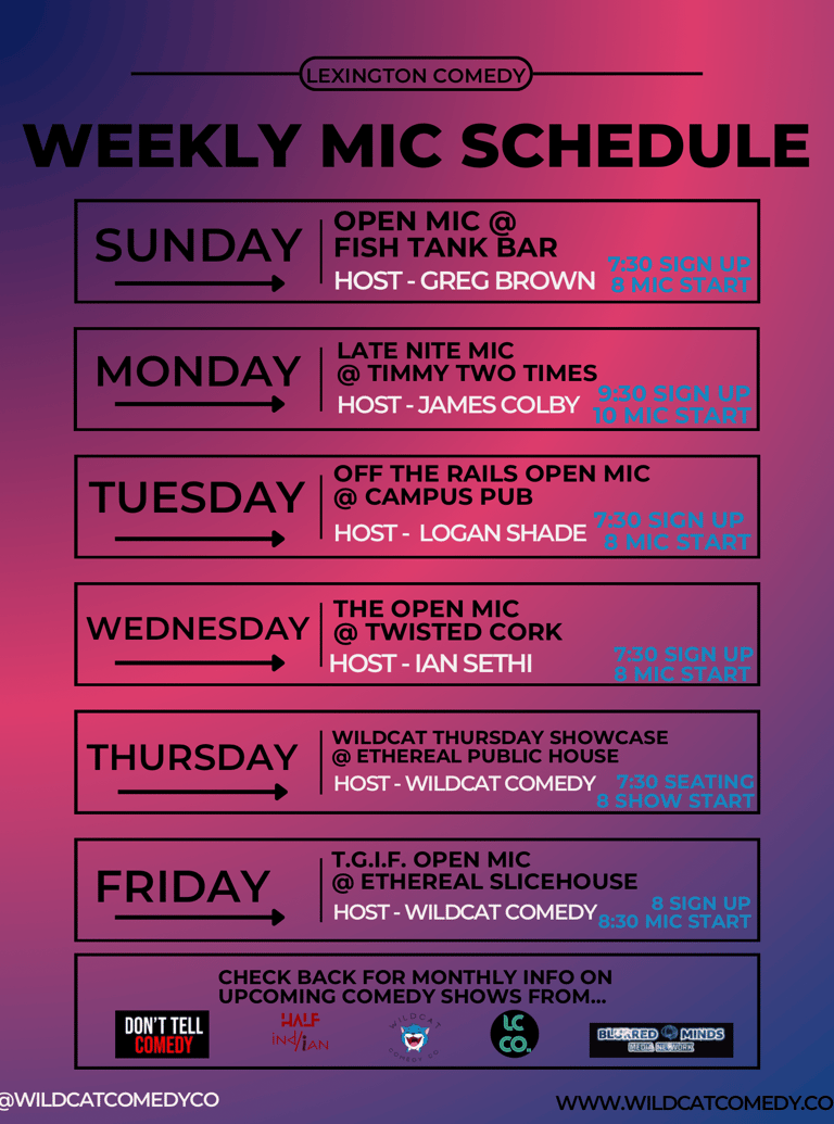 Follow @wildcatcomedyco on instagram for events, updates, & info!